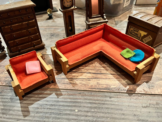 5 piece Couch Sectional & Matching Chair, with throw pillows